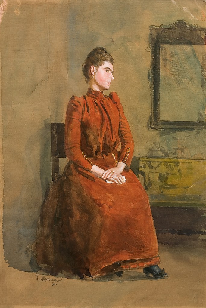 Junge Dame in rotem Kleid, 1891