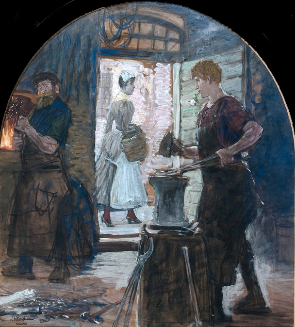 In 1888, he was appointed a professor at the Prussian Academy and, in 1892, became a full member there. A year later, however, he resigned his teaching position due to disagreements with the academy’s Director, Anton von Werner. The problem stemmed from his participation in the “Group of Eleven”, an association of artists dedicated to promoting their own exhibitions of what was then considered “radical” art, free of the academy’s influence. This eventually (in 1898) led to the establishment of the Berlin Secession, of which Skarbina was a co-founder.