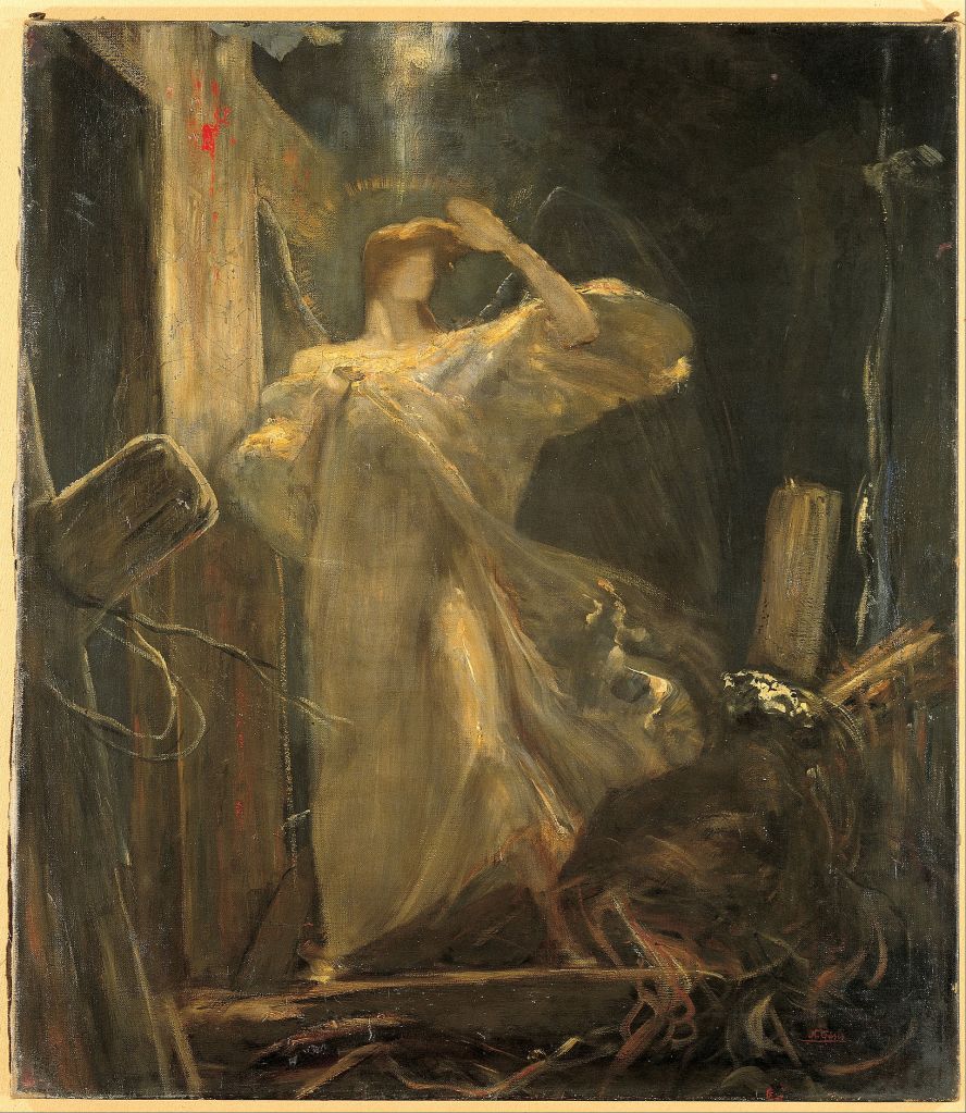 The morning air is all awash with angels. - Now they are rising together in calm swells