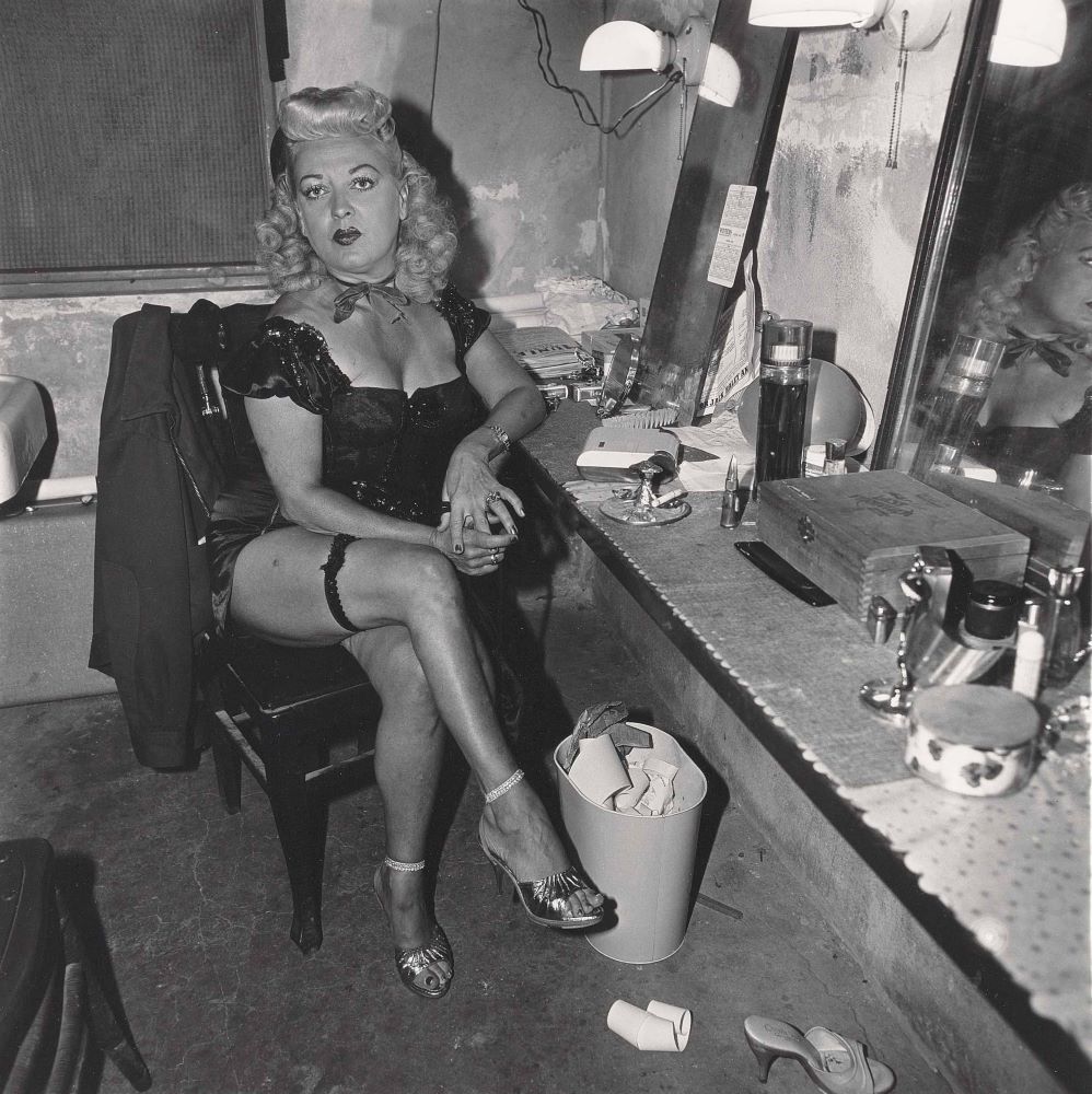 Burlesque comedienne in her dressing room, Atlantic City (1963)