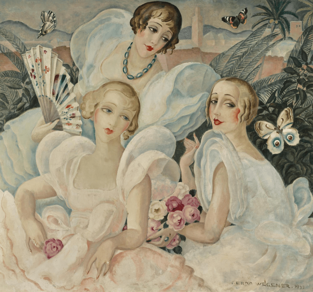 During this time Elbe began to wear female clothing, and adopted her female name and persona, becoming Gerda Wegener’s favourite model, in paintings of beautiful women with haunting almond-shaped eyes dressed in chic fashions. In 1913, the art world was shocked when they learned that the model who had inspired her depictions of petite femmes fatales was in fact her “husband”.