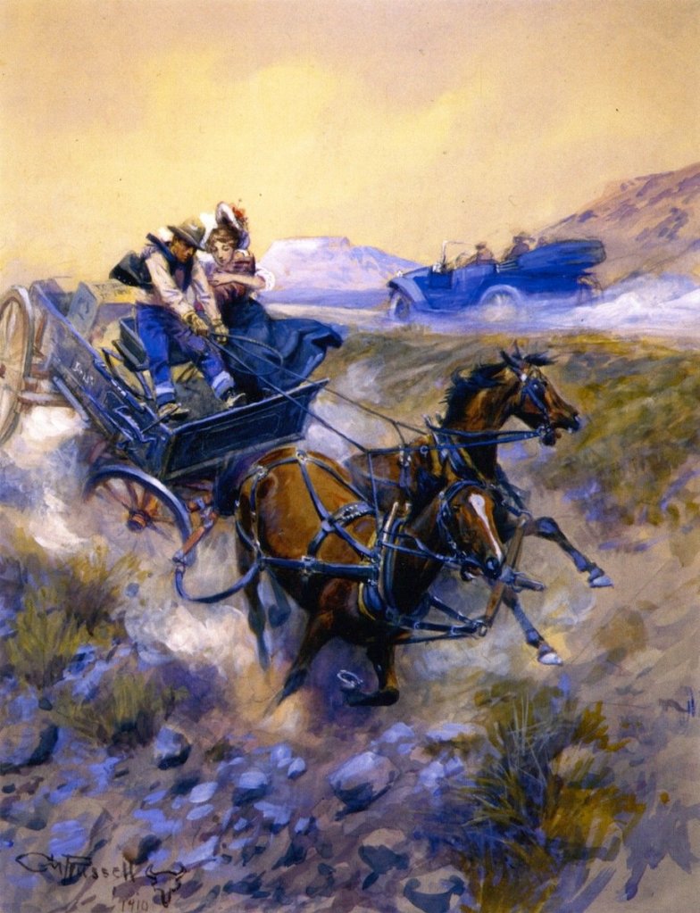 Today is the birthday of Charles M. Russell (Charles Marion Russell; St. Louis, Missouri; March 19, 1864 – October 24, 1926 Great Falls, Montana), also known as C. M. Russell, Charlie Russell, and “Kid” Russell; artist of the Old American West. Russell created more than 2,000 paintings of cowboys, Indians, and landscapes set in the Western United States and in Alberta, Canada, in addition to bronze sculptures. Known as ‘the cowboy artist’, Russell was also a storyteller and author. The C. M. Russell Museum Complex located in Great Falls, Montana, houses more than 2,000 Russell artworks, personal objects, and artifacts. Other major collections are held at the Montana Historical Society in Helena, Montana, the Buffalo Bill Center of the West in Cody, Wyoming, the Amon Carter Museum of American Art in Fort Worth, Texas, and the Sid Richardson Museum in Fort Worth, Texas.