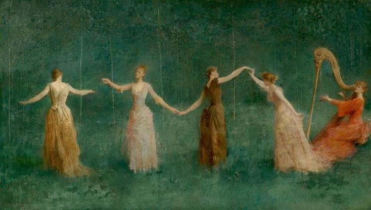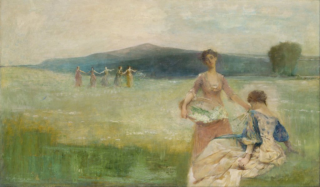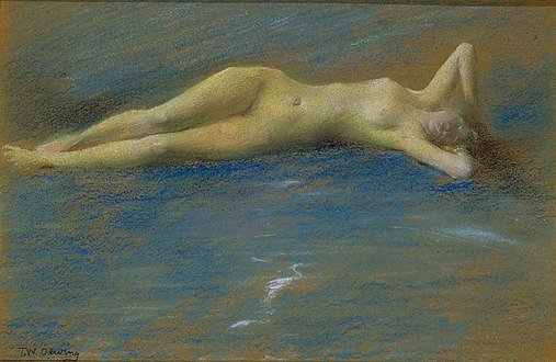 And today is the birthday of Thomas Dewing (Thomas Wilmer Dewing; Boston; May 4, 1851 – November 5, 1938 New York City); painter working at the turn of the 20th century. Schooled in Paris, Dewing was noted for his figure paintings of aristocratic women. He was a founding member of the Ten American Painters and taught at the Art Students League of New York. The Art Museum at the Smithsonian Institution has a room dedicated to his works.