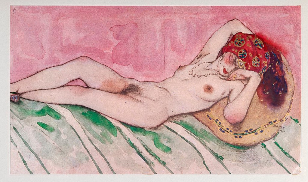 And today is the birthday of Léon Bakst (Lev (Leib) Samoilovich Rosenberg, Grodno (Belarus) 10 May 1866 – 28 December 1924 Rueil Malmaison, near Paris); painter and scene and costume designer. He was a member of the Sergei Diaghilev circle and the Ballets Russes, for which he designed exotic, richly coloured sets and costumes.