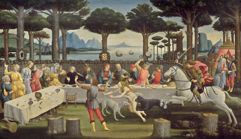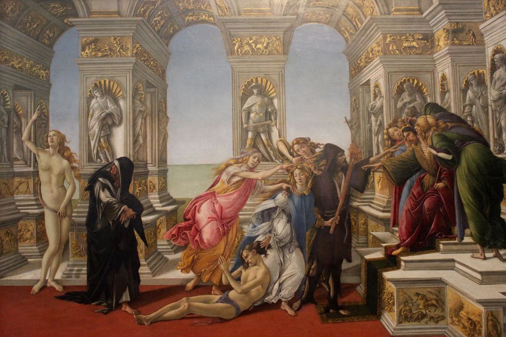 He might have had a close relationship with Simonetta Vespucci (1453–1476), who has been claimed, especially by John Ruskin, to be portrayed in several of his works and to have served as the inspiration for many of the female figures in the artist’s paintings. It is possible that he was at least platonically in love with Simonetta, given his request to have himself buried at the foot of her tomb in the Ognissanti – the church of the Vespucci – in Florence, although this was also Botticelli’s church, where he had been baptized. When he died in 1510, his remains were placed as he requested.