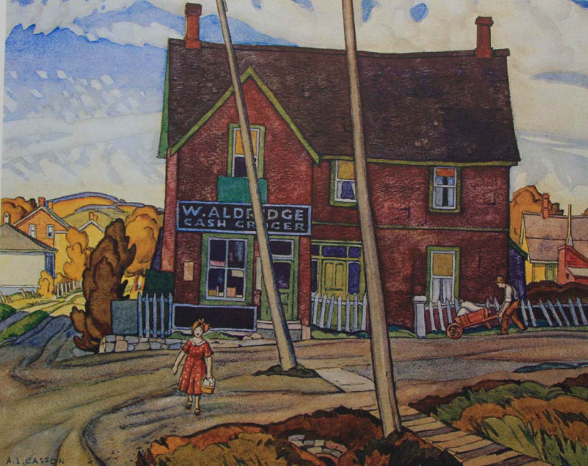 And today is the birthday of A. J. Casson (Alfred Joseph Casson; Toronto; May 17, 1898 – February 20, 1992 Toronto); member of the Canadian group of artists known as the Group of Seven. He joined the group in 1926 at the invitation of Franklin Carmichael, replacing Frank Johnston. Casson is best known for his depictions in his signature limited palette of southern Ontario, and for being the youngest member of the Group of Seven.