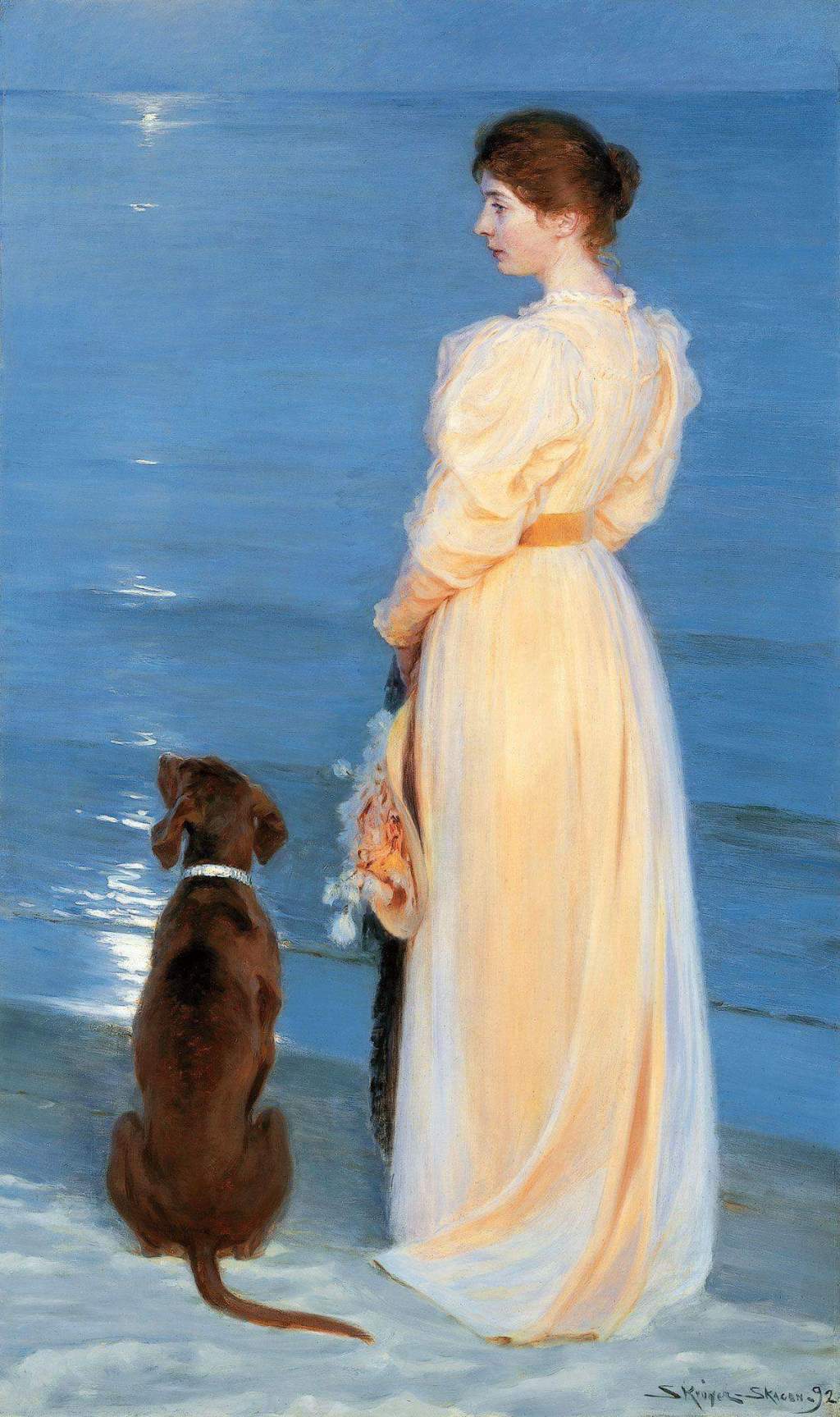 Summer Evening at Skagen. The Artist’s Wife and Dog by the Shore, 1892