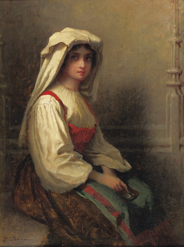 today is the birthday of Eastman Johnson (Jonathan Eastman Johnson; Lovell, Maine; July 29, 1824 – April 5, 1906 New York City); painter and co-founder of the Metropolitan Museum of Art, New York City, with his name inscribed at its entrance. Perhaps best known for his genre paintings, paintings of scenes from everyday life, and his portraits both of everyday people and prominent Americans such as Abraham Lincoln, Nathaniel Hawthorne, Ralph Waldo Emerson, and Henry Wadsworth Longfellow. His later works often show the influence of the 17th-century Dutch masters, whom he studied in The Hague in the 1850s; he was known as The American Rembrandt in his day.