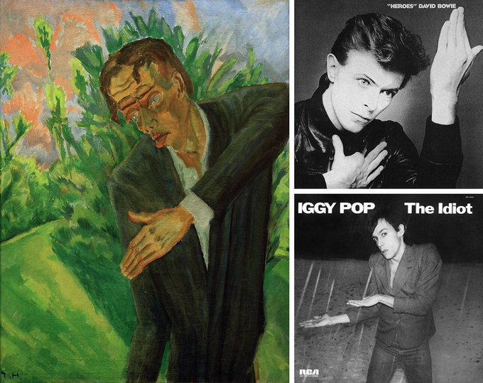 David Bowie based the cover of his 1977 album “Heroes” on Heckel’s painting Roquairol. The same painting also provided the basis for the cover of Iggy Pop’s 1977 album The Idiot