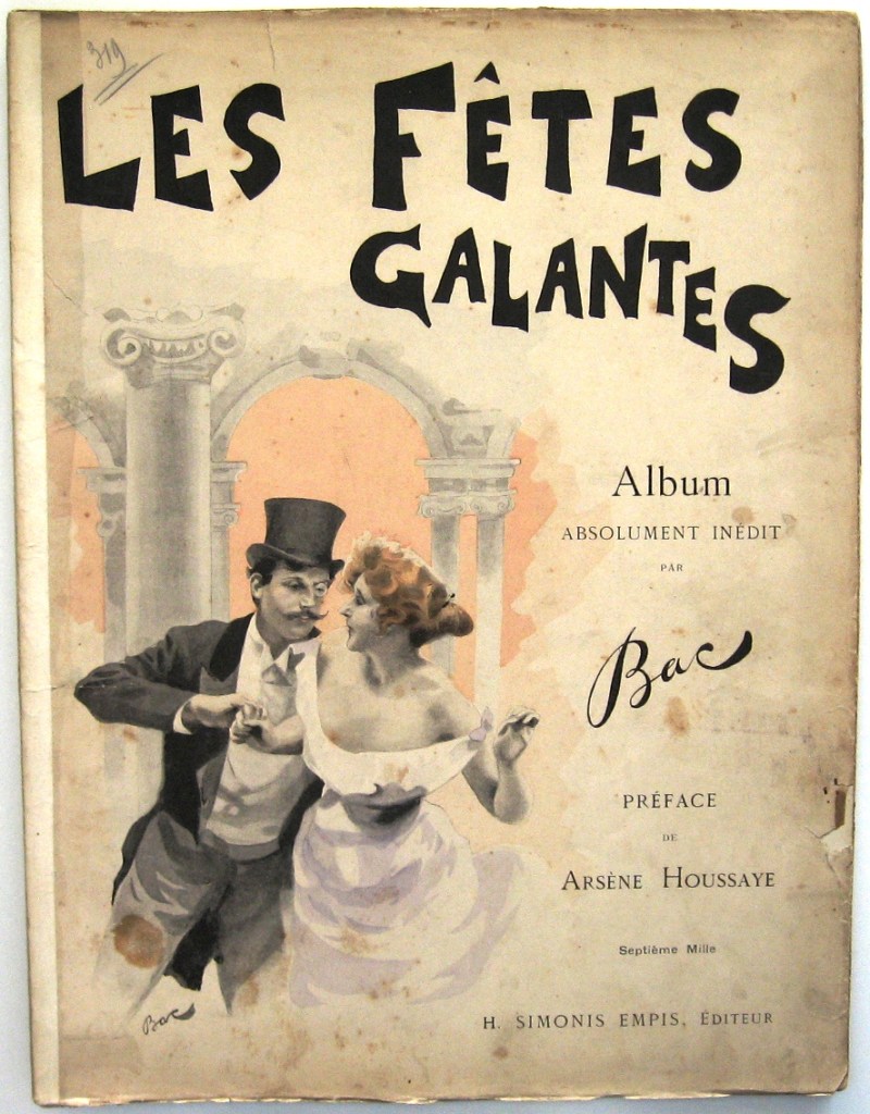Bac’s cartoons were often risqué and reflected contemporary Parisian attitudes towards sex. His 1892 drawing Femmes Automatiques for La Vie Parisienne depicted a collection of women in different roles who could be animated by inserting a coin. It implies that in addition to their legitimate roles as dancer, chambermaid, actress and so on, the women would provide sexual services at varying prices. An erotic illustration for the same journal in 1899 showed a woman wrapped in snakes. Bac often drew pictures of models posing for artists that suggested an intimate relationship.
