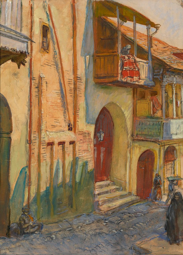 Lanceray left Saint Petersburg in 1917, and spent three years living in Dagestan, where he became infatuated with Oriental themes. His interest increased during journeys made in the early 1920s to Japan and Ankara, Turkey. In 1920, he moved to Tiflis, Georgia. During his stay in Georgia, he lectured at the Tbilisi State Academy of Arts (1922–1934) and illustrated the Caucasian novellas of Leo Tolstoy. Amongst his students was Apollon Kutateladze.