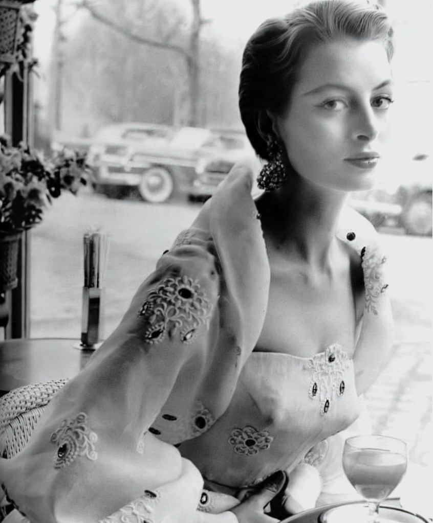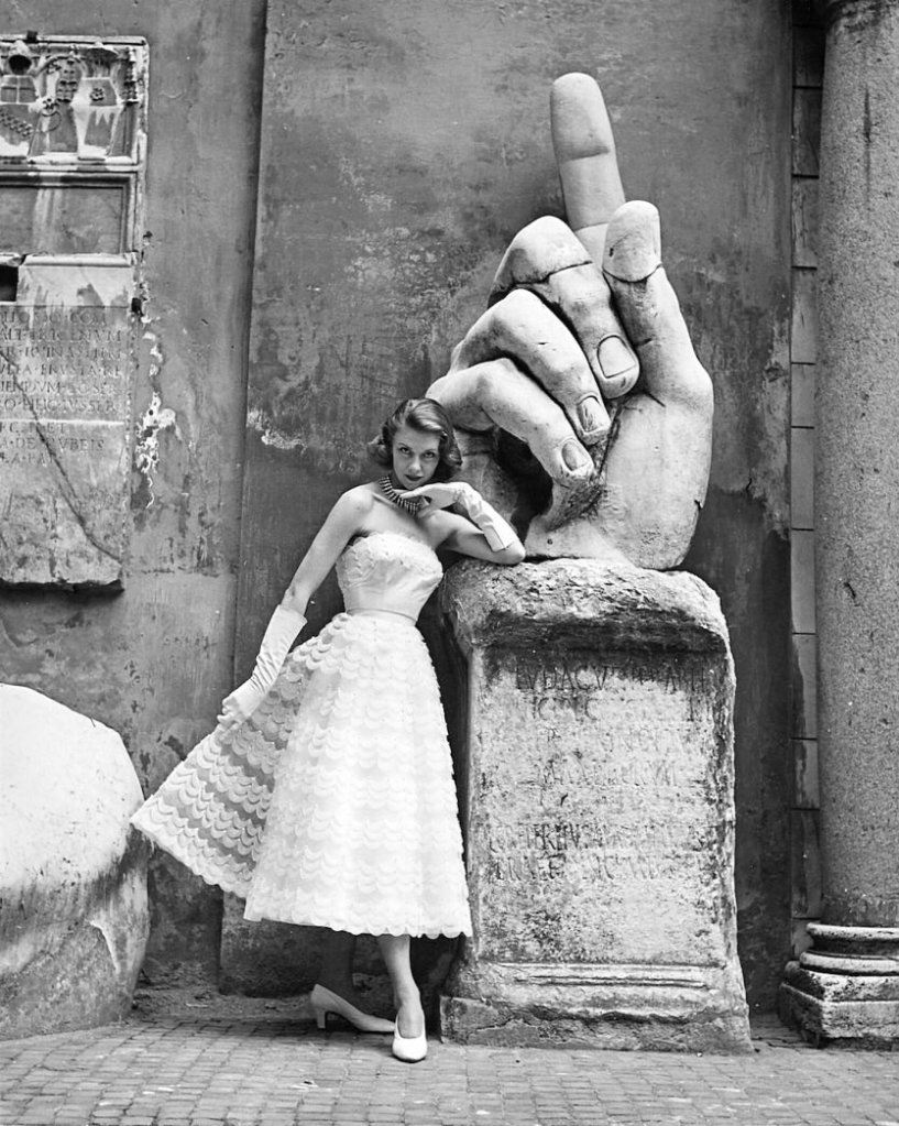 Model wearing a dress by Sorelle Fontana, Rome,1952