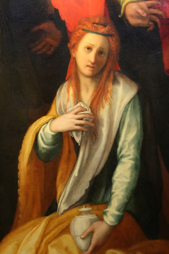 While Suzanne holds the mirror.