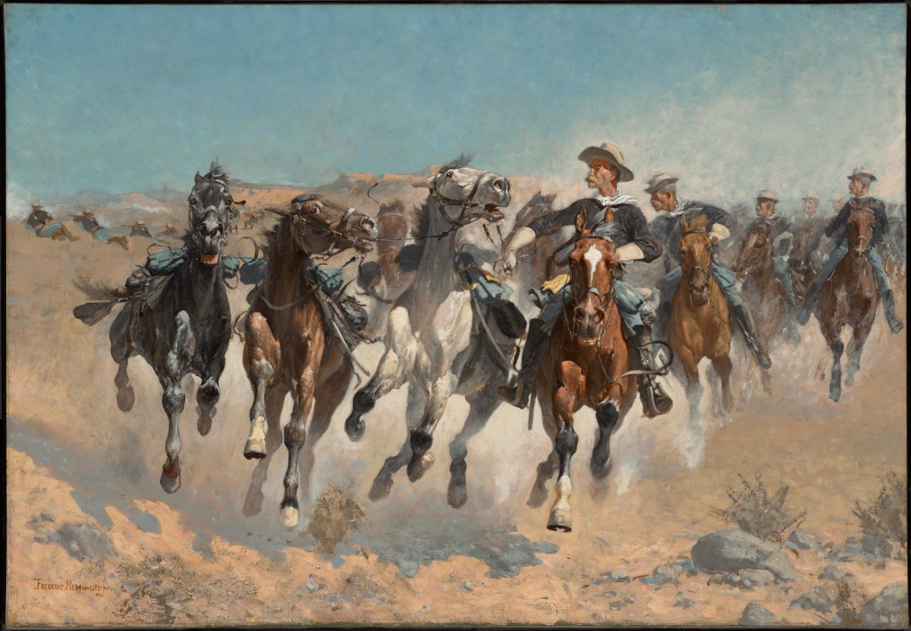 Dismounted: The Fourth Troopers Moving the Led Horses, an 1890 oil on canvas portrait by Remington now housed in the Clark Art Institute in Williamstown, Massachusetts