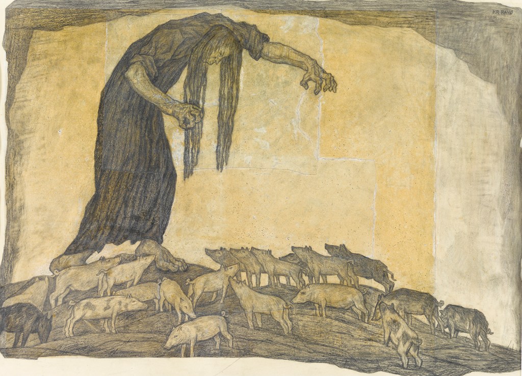 Today is the birthday of Kristjan Raud (22 October 1865, Kirikuküla, Vinni Parish, Estonia – 19 May 1943, Tallinn, Estonia); painter and illustrator who was one of the founders of the Estonian National Museum. Folklore elements figure heavily in his subject matter and his style is reminiscent of Primitivism. His twin brother, Paul, also became a well-known painter.