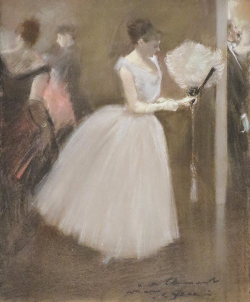 Forain joined the Impressionist circle in time to take part in the fourth independent exhibition in 1879; he participated in four of the eight Impressionist Exhibitions (1879, 1880, 1881 and 1886). Influenced by Impressionist theories on light and color, he depicted scenes of everyday life: his watercolors, pastels and paintings focused on Parisian popular entertainments and themes of modernity—the racetrack, the ballet, the comic opera and bustling cafés.