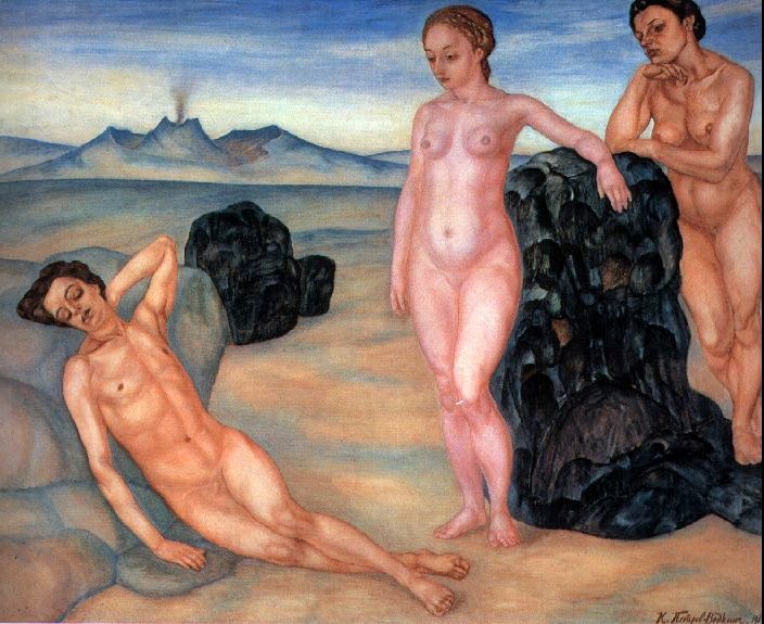 And today is the birthday of Kuzma Petrov-Vodkin, (Kuzma Sergeyevich Petrov-Vodkin; born in Khvalynsk (Saratov Oblast), Russian Empire; November 5, [O. S. 24 October] 1878 – February 15, 1939 Leningrad); painter and writer. His early iconographic work used special creative effects based on the curve of the globe, but its images were considered blasphemous by the Russian Orthodox Church. However he went on to become the first president of the Leningrad Union of Soviet Artists. His autobiographical writings attracted much praise, and have enjoyed a later revival. He was one of the members of the art association ‘The Four Arts’, which existed in Moscow and Leningrad in 1924-1931.