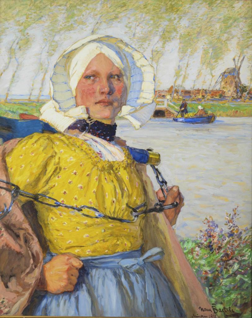 A Young Fishing Girl from Rijsoord, Dordrecht in the Distance