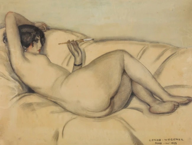 Elbe started dressing in women’s clothes after she found she enjoyed the stockings and heels she wore to fill in for Gottlieb’s model, actress Anna Larssen, who, on one occasion, had been late for a sitting. Larssen suggested the name Lili, and, by the 1920s, Elbe regularly presented with that name as a woman, attending various festivities and entertaining guests in her house. Gottlieb became famous for her paintings of beautiful women with haunting, almond-shaped eyes, dressed in chic apparel. The model for these depictions of petites femmes fatales was Elbe. Elbe stopped painting after her transition