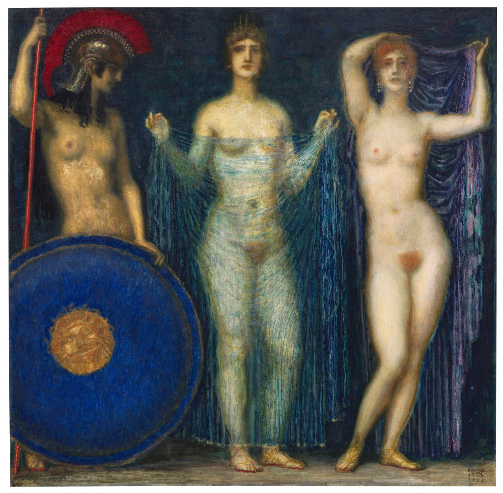 And today is the birthday of Franz von Stuck (Franz Ritter von Stuck; Tettenweis, Kingdom of Bavaria; February 23, 1863 – August 30, 1928 Munich); painter, sculptor, printmaker, and architect. Stuck was best known for his paintings of ancient mythology, receiving substantial critical acclaim with The Sin in 1892. In 1906, Stuck was awarded the Order of Merit of the Bavarian Crown and was henceforth known as Ritter von Stuck.