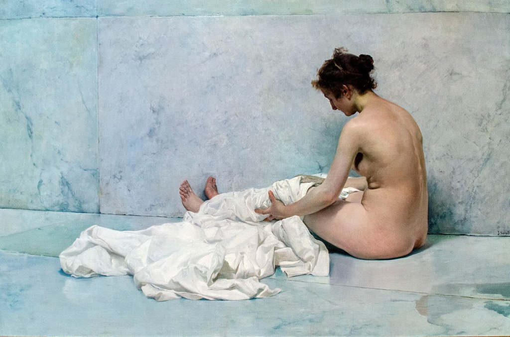 In 1888, Sorolla married Clotilde García del Castillo, whom he had first met in 1879 while working in her father’s studio.  In 1890, they moved to Madrid, and for the next decade Sorolla’s efforts as an artist were focussed mainly on the production of large canvases of orientalist, mythological, historical, and social subjects, for display in salons and international exhibitions in Madrid, Paris, Venice, Munich, Berlin, and Chicago.