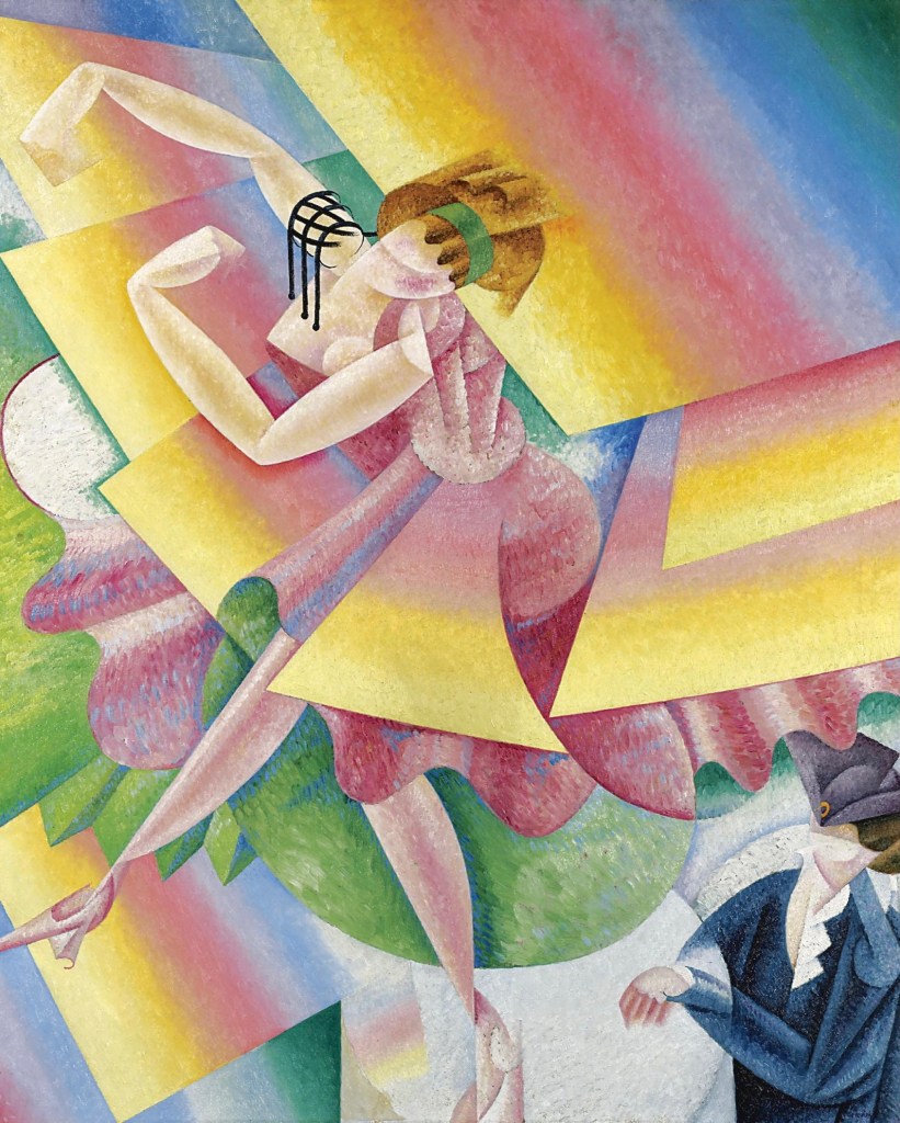 1912, Dynamism of a Dancer (Dinamismo di una danzatrice, Ballerina di chahut), oil on canvas, 60 x 45 cm, Jucker Collection, Pinacoteca di Brera, Milan