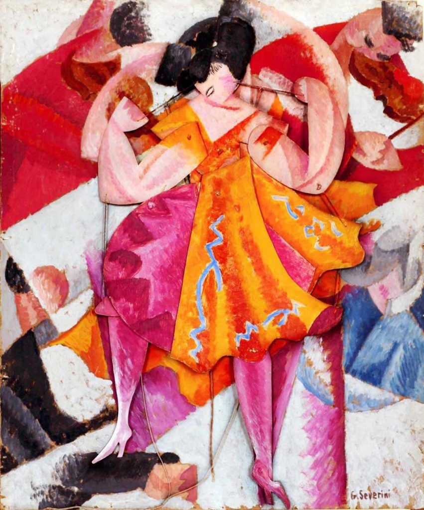 Severini settled in Paris in November 1906. The move was momentous for him. He said later, “The cities to which I feel most strongly bound are Cortona and Paris: I was born physically in the first, intellectually and spiritually in the second.” He lived in Montmartre and dedicated himself to painting. There he met most of the rising artists of the period, befriending Amedeo Modigliani and occupying a studio next to those of Raoul Dufy, Georges Braque and Suzanne Valadon. He knew most of the Parisian avant-garde, including Jean Metzinger, Albert Gleizes, Juan Gris, Pablo Picasso, Lugné-Poe and his theatrical circle, the poets Guillaume Apollinaire, Paul Fort, Max Jacob, and author Jules Romains. The sale of his work did not provide enough to live on and he depended on the generosity of patrons.