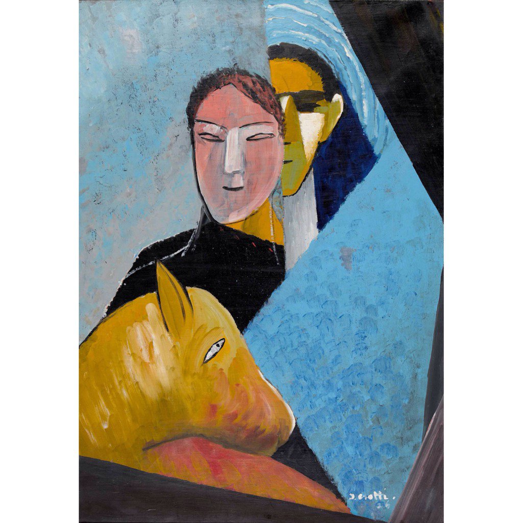 In the fall of 1916, Crotti separated from his wife, Yvonne Chastel, and returned to Paris. He had begun a relationship with Suzanne that would culminate in his divorce in 1919 and immediate marriage to Suzanne. An artist in her own right, she would greatly influence Crotti’s painting. In 1920, he produced one of his best known works, a portrait of Thomas Edison. He participated in the 1925 Exposition International in Paris and the International Exhibition of Modern Art at the Brooklyn Museum in 1926–1927. Over the ensuing years, he would create numerous paintings and be the subject for several solo exhibitions at major galleries in England, France, Germany, and the United States.